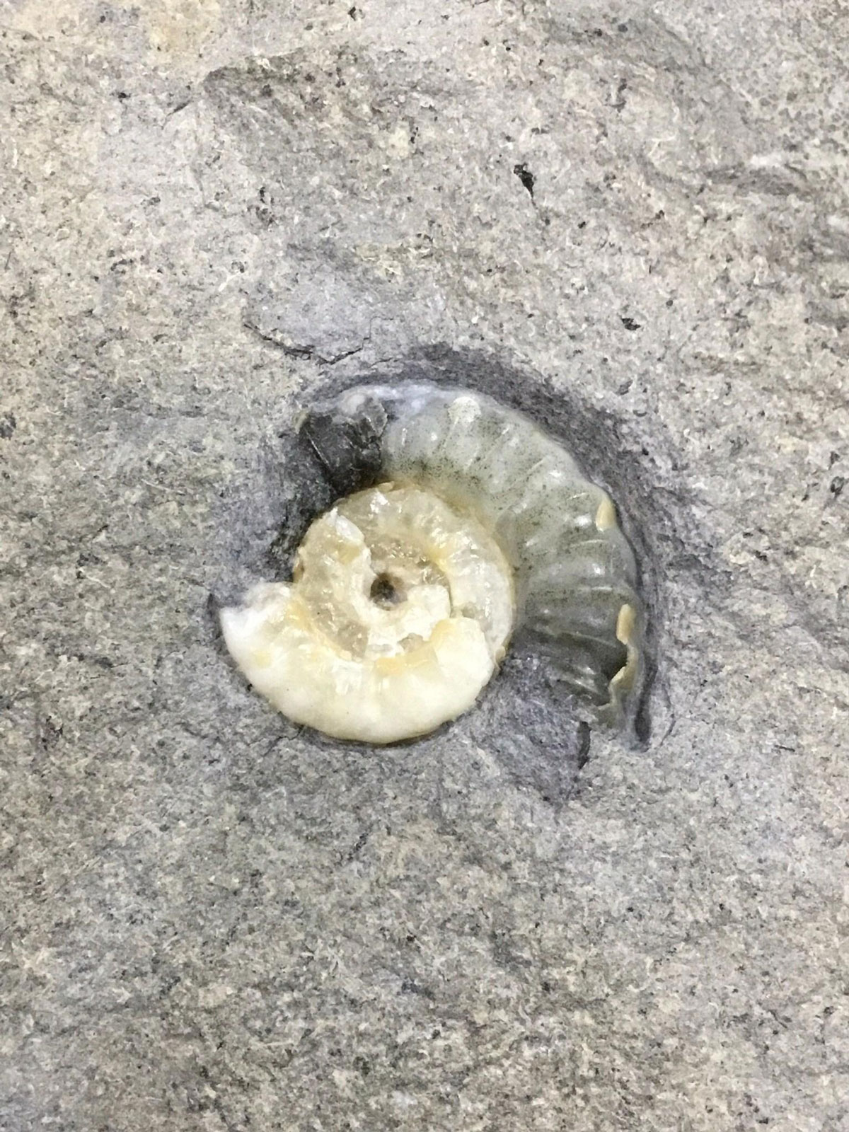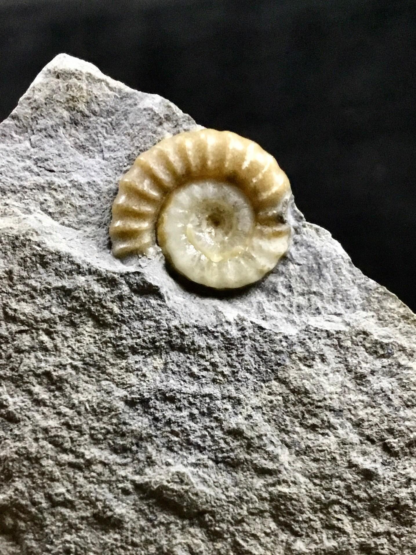 菊石尺寸: 3.4/2/1/1.5 cm, 母岩尺寸: 18*17.5 cm
